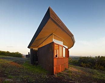 The “brow of the hill” is hard rust brown granite, and the house follows the contour here and sweeps through 270 degrees/ of coastal landscape. A sunlit courtyard and terrace are contained within the outline of the building. They combine with thick walls and alcoves to offer protection from the south for year round outside living.
